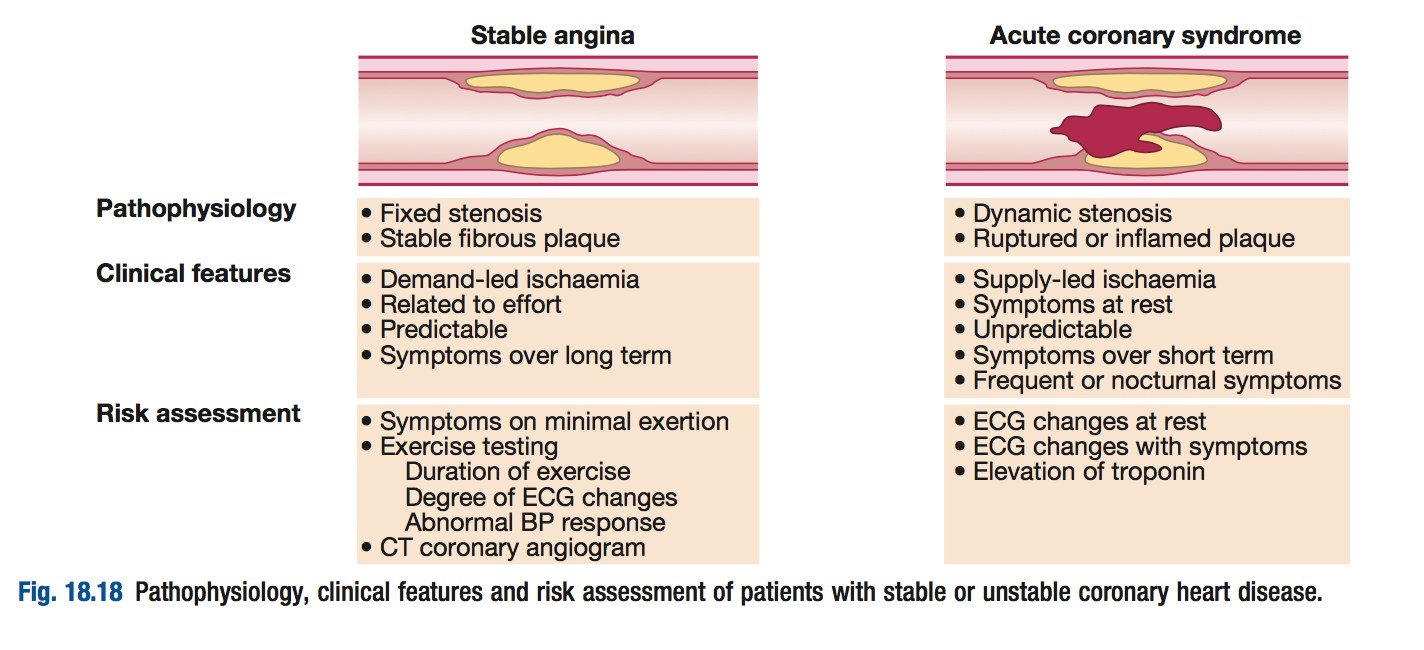 Management of unstable angina is the same as for nstemi discussed above. Unstable angina is only diagnosed if there are no evidence of myocardial infarction (necrosis). Troponin measurements will be normal as there has not been any ischaemic damage (yet) and the ecg may be normal for similar reasons. A diagnosis of nstemi is typically made when the person has symptoms of unstable angina. Coronary artery disease (cad) is the leading cause of death in the united states. Pain compatible with angina pectoris and. The term acute coronary syndrome (acs) is applied to patients in whom there is a suspicion or confirmation of acute myocardial ischemia or infarction. Nstemi and unstable angina are different in one fundamental aspect: Rise or fall of cardiac biomarker values with at least one value above the 99th percentile, possibly by point of care measurement and/or. 3901 patients (57.3%) had confirmed nstemi; Acute coronary syndrome (acs) is a catch all term that refers to ischemic symptoms resulting from acute coronary occlusion. Stemi results from complete and prolonged occlusion of an epicardial coronary blood vessel and is defined based on ecg criteria.nstemi usually results from severe coronary artery narrowing, transient. The clinical manifestations of ischemic heart disease include chronic stable angina and acute coronary syndromes (acs) ();